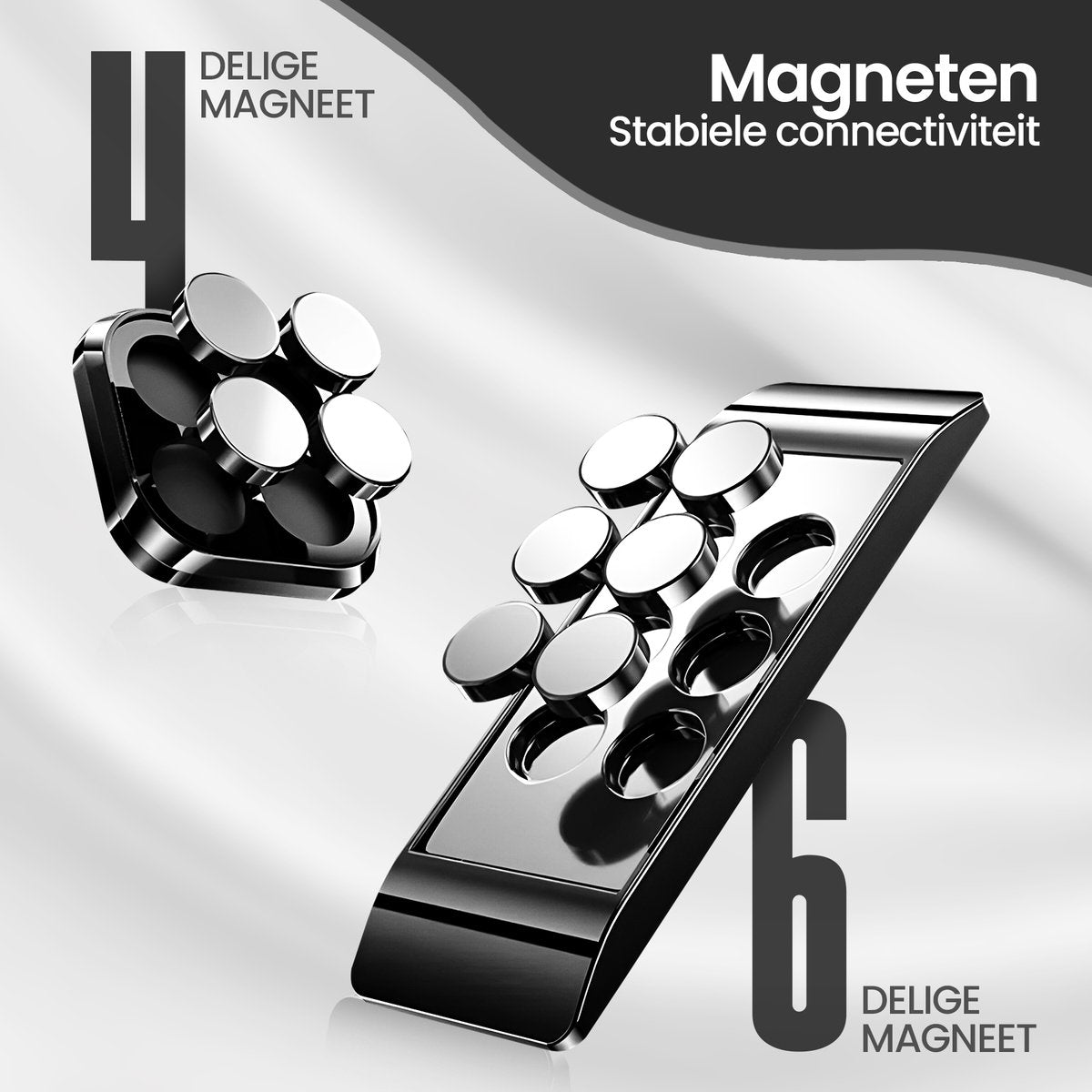 Package contents: 2x Magnetic phone holder 4x Magnetic plate round 1x Magnetic plate rectangle 1x Dashboard pad cleaning cloth