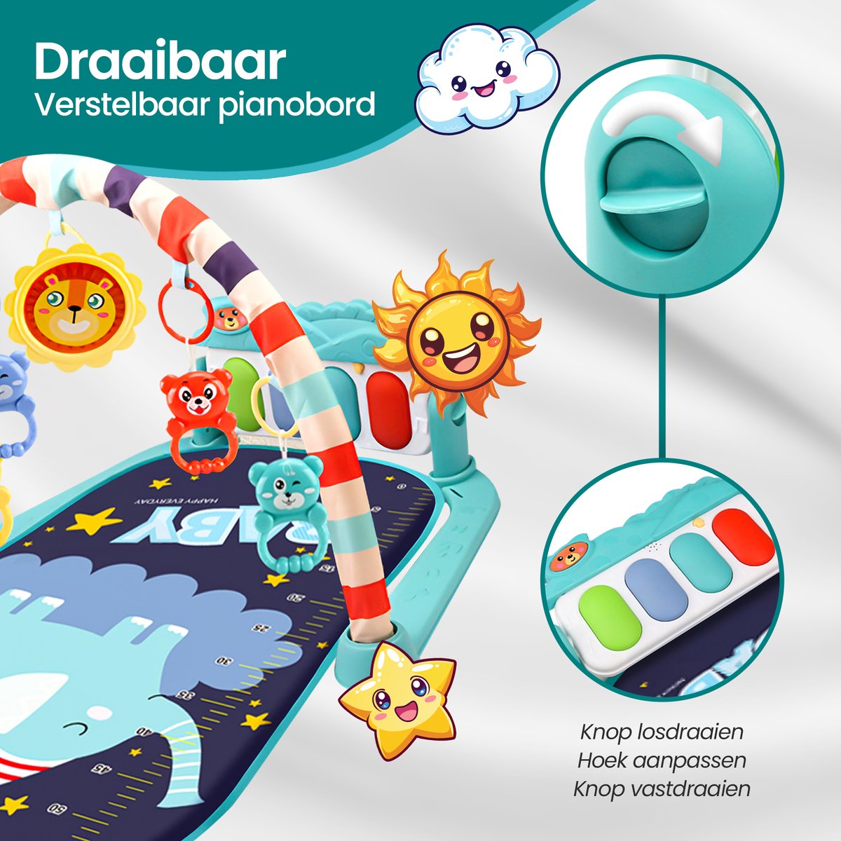 Introduce your baby to the world of music, movement and discovery in a fun and interactive way with the Velox Goods VL-504 Baby Gym with Fitness Piano. This multifunctional play mat offers an extensive playing experience, specially designed for babies from 3 months. The activity center includes an interactive piano, colorful toys and a comfortable play mat, perfect for both lying and sitting games.
