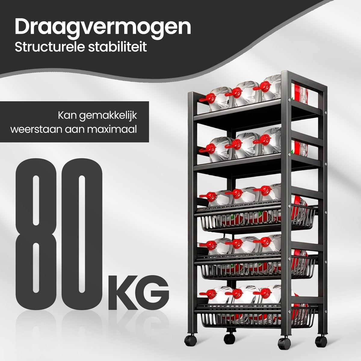 • Five Layers Storage: Provides ample space for storing various kitchen items, from appliances to food.