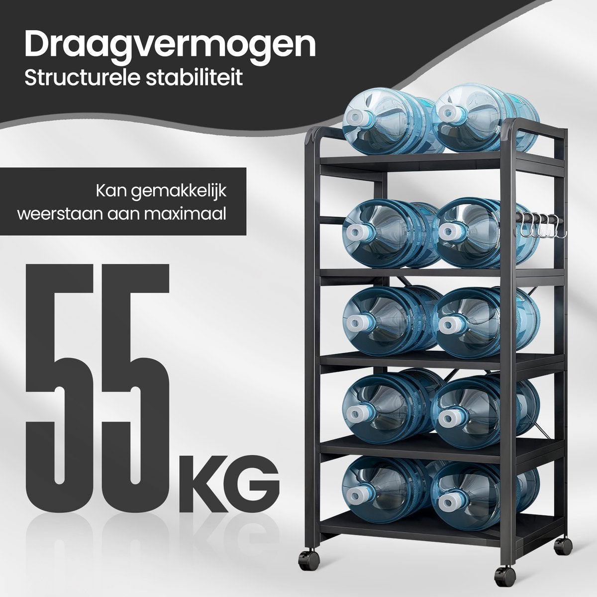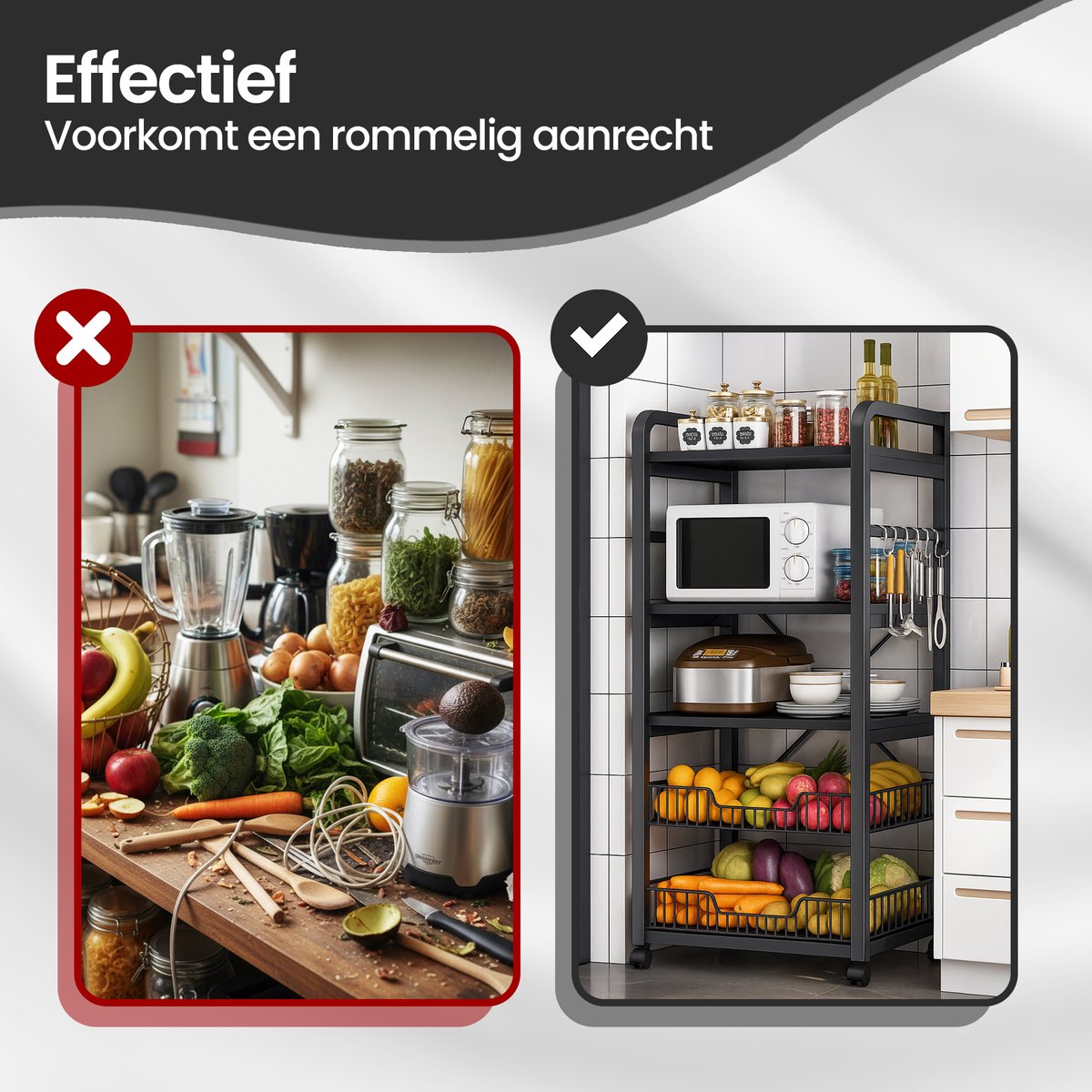 • 4 spacious shelves – Space for microwave, supplies, fruit and kitchen appliances