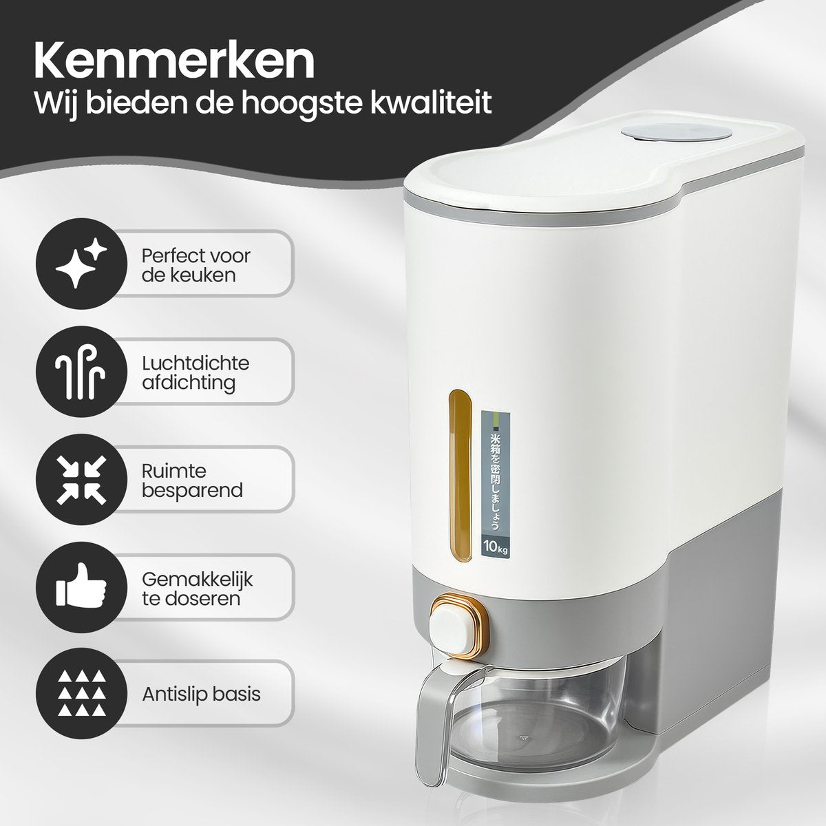 Large capacity – 10 kg – Ideal for rice, beans, grains, millet, pasta and more