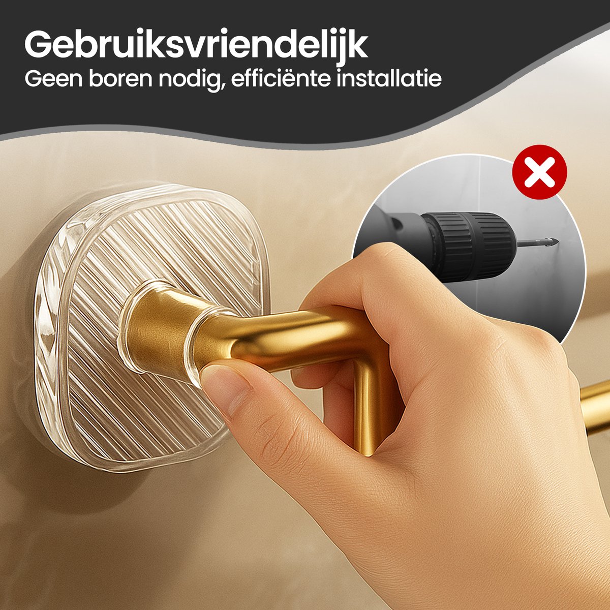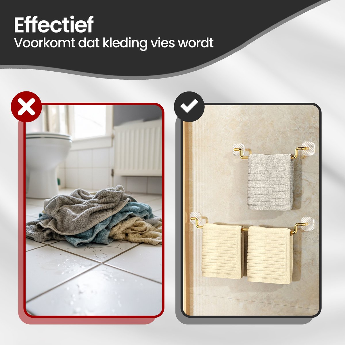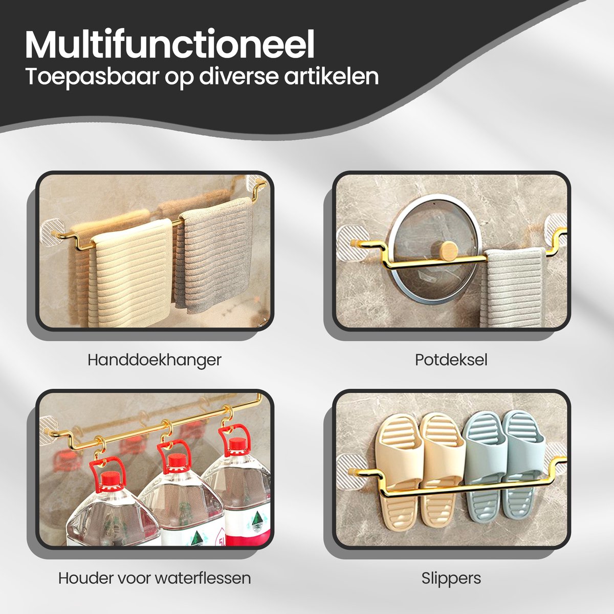 Instantly make your bathroom, kitchen, or hallway more stylish and practical with the VL-533 towel rack from Velox Goods . This self-adhesive wall rack is made of sturdy stainless steel and comes with a waterproof power sticker for easy installation—no drill required! Its gold-tone design adds a touch of luxury to your space while keeping your towels neatly drying.